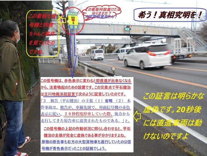 *衝突すると直ぐに、被害者の知人らしき人物(近くの(株)小島レッカー社の担当社員・田頭広明。)が私の車の右後方から走って現れ、被害者の所に駆け寄り被害者・埼玉県警本部総務部留置管理課所属・平石健治をケアしていた。そこで待機していたのですね。でなきゃ不可能ですから。ほぼ衝突と同時ですからね。